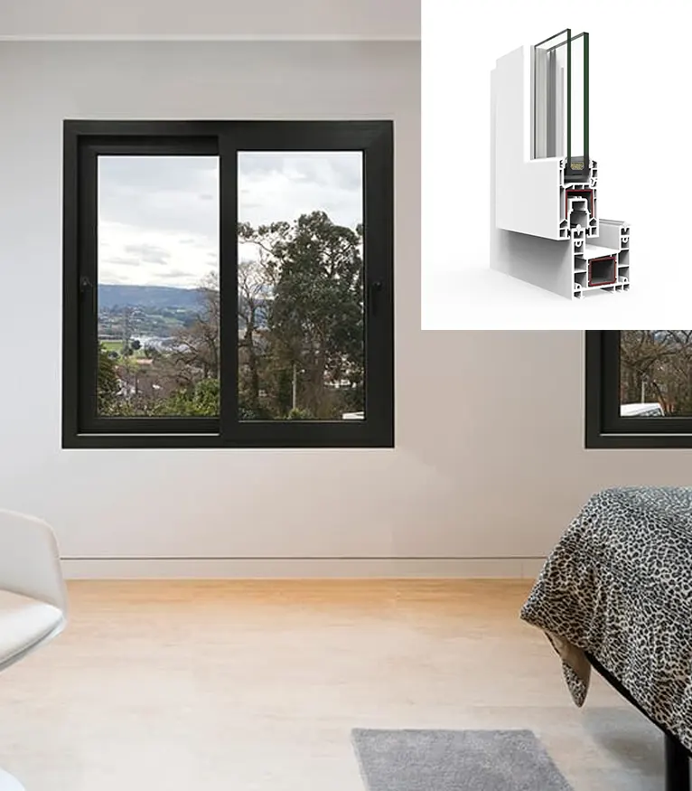 Sistema abisagrado de 84 mm de profundidad y 6 cámaras que ofrece las mejores prestaciones térmicas del mercado, con un valor de transmitancia Uf desde tan solo 0,76 W/m²K. Esta serie ha sido certificada por el Passivhaus Institute para la categoría cool-temperate (climas fríos y templados), convirtiéndose en una solución ideal para edificaciones de bajo consumo energético. Incorpora espumas aislantes especiales en marco y hoja, prescindiendo del refuerzo de acero para mejorar la transmitancia.